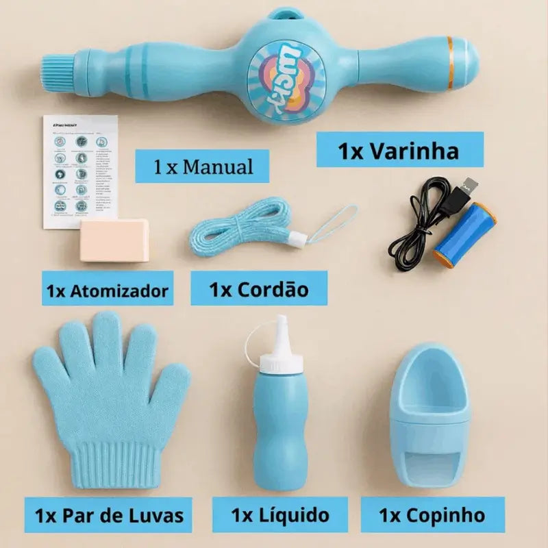 Inclui luvas especiais para capturar e interagir com as bolhas de forma divertida.