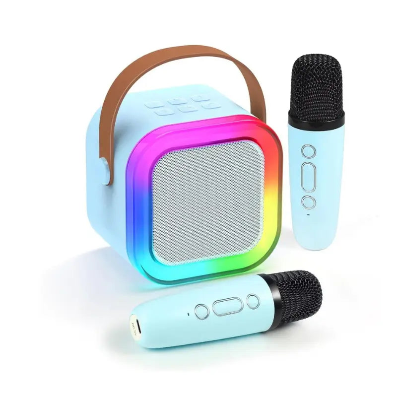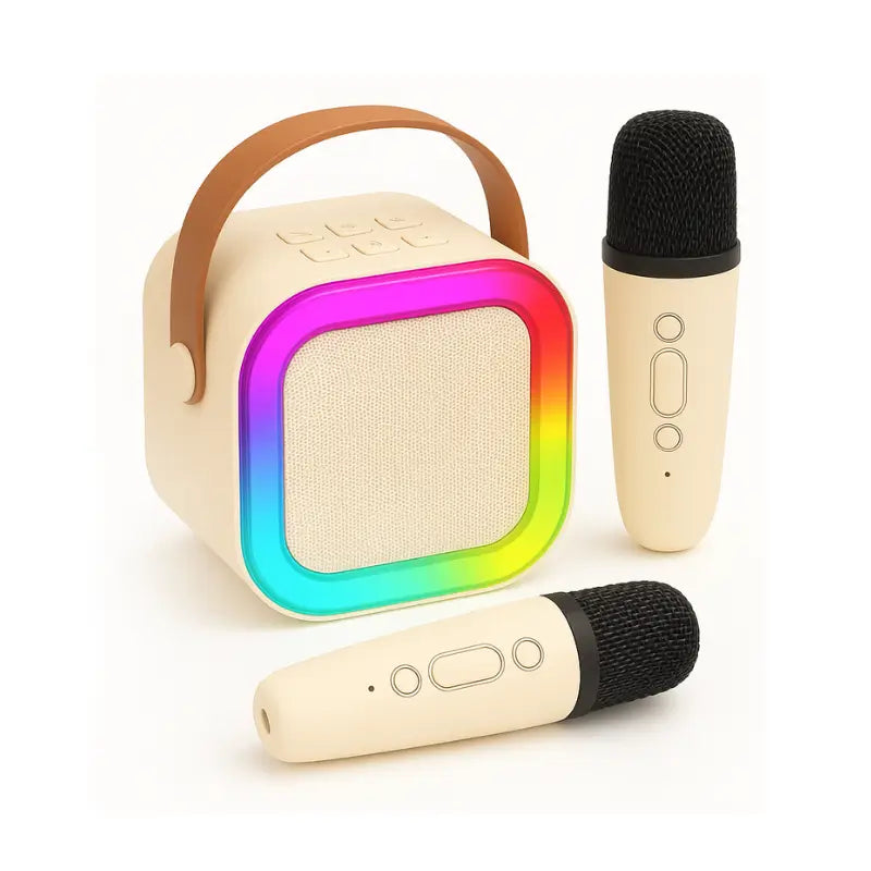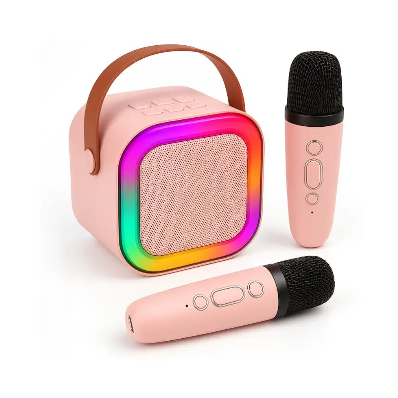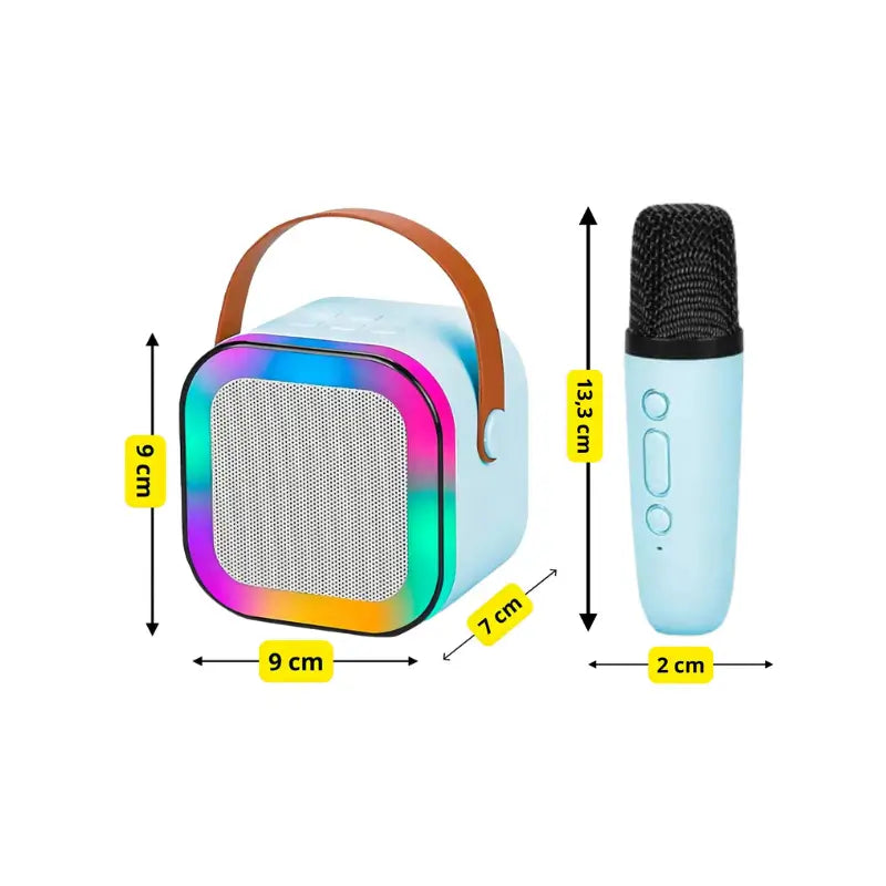 Com conexão Bluetooth, dois microfones sem fio e design portátil, é fácil de usar em casa, festas, viagens ou encontros com amiguinhos.