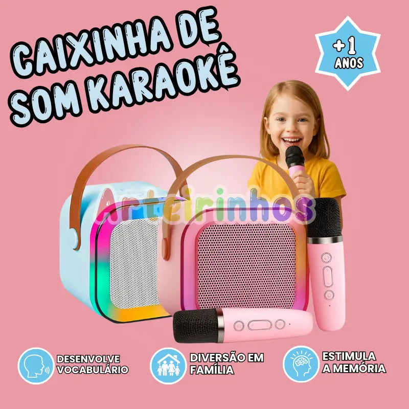 Caixinha de Som Karaokê com Microfones sem Fio - Arteirinhos